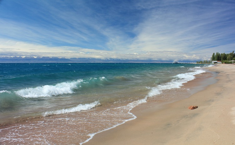 Раз мы рядом с Иссык-Кулем, то заглянуть на озеро надо обязательно. Анара, отдыхавшая с семьей на озере в ноябре, сделала вроде бы и простой, но достаточно выразительный снимок. Такого во время туристического сезона тут точно не увидишь.