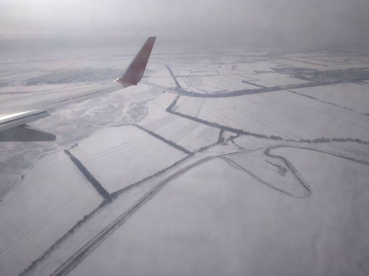 А теперь взглянем на Кыргызстан с обратной стороны, то есть из самолета. Анастасия Мокренко сделала фотографии Чуйской области во время посадки лайнера в аэропорту «Манас».