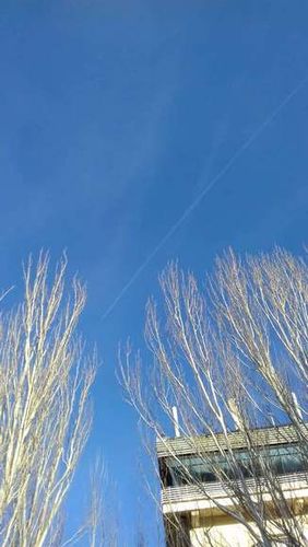 Начнем нашу прогулку с Бишкека. Айгул Ырысова увидела в небе пролетающий над столицей самолет. Кстати, такое голубое небо в последнее время не так часто радует горожан.