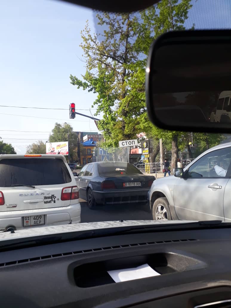 На перекрестке улицы Тоголока Молдо и проспекта Жибек Жолу в Бишкеке не видно дорожных знаков. Фото 24-kg.com прислал читатель.