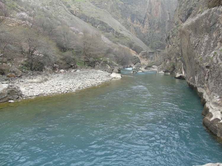 Теперь перенесемся на юг — в Ошскую область. Мамасалы Ташматов побывал в верховьях реки Ак-Бууры и сделал фотографии весеннего и пока еще спокойного ее течения.