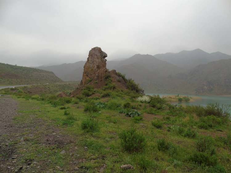 «Маймыл» (обезьяна) — так назвал лет 20-25 назад эту каменную статую мой сын. В последние годы она заметно начала разрушаться», — написал о своей фотографии Мамасалы Ташматов. Там же на дороге Бишкек — Ош он сделал и снимок реки Нарын.