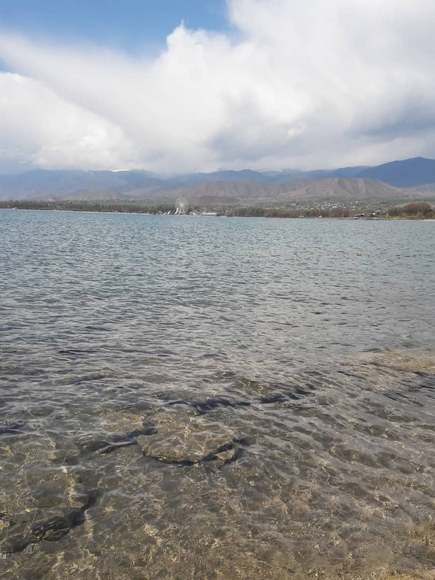 «Не могла не поделиться впечатлениями от космической красоты нашей жемчужины Кыргызстана — озера Иссык-Куль. В селе Бостери озеро поразило меня неземной красотой и космической безмятежностью. Впервые, утром после вечернего шторма, я увидела, как озеро спит. Ни одного шороха волны. Тишина и полная безмятежность...» — написала Майя Ахметова о своих фотографиях.