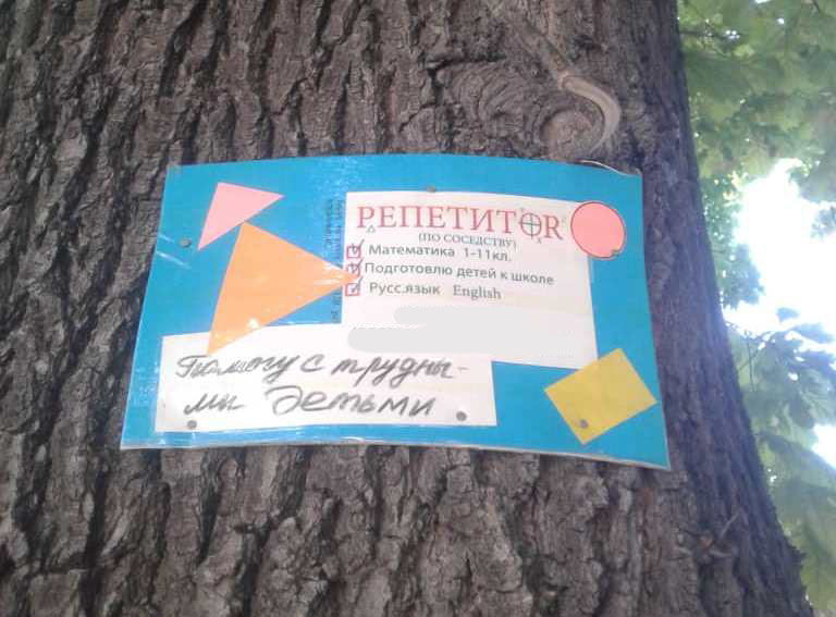 В районе средней школы № 41 Бишкека объявления о репетиторстве прибиты к деревьям гвоздями. Об этом 24-kg.com сообщили жители близлежащих улиц.