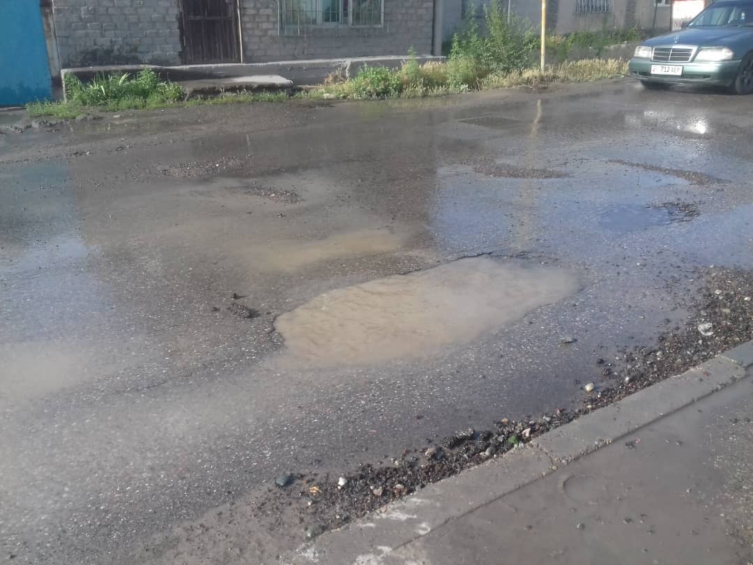 В Бишкеке из-за порыва водопровода размыло дорогу. Об этом 24.kg сообщили читатели.