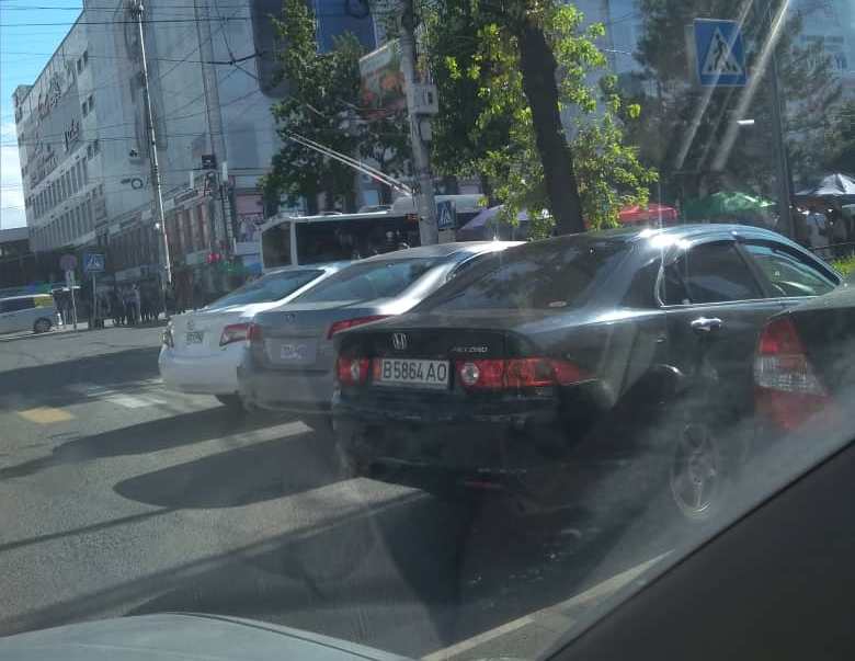 Вновь бишкекчане жалуются и на парковку на перекрестке проспекта Чуй и улицы Шопокова. «Запаркована вся полоса движения», — сообщил читатель.