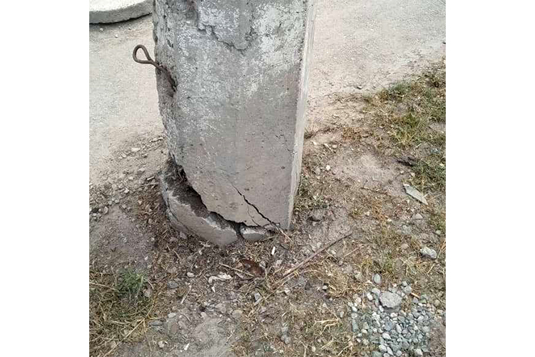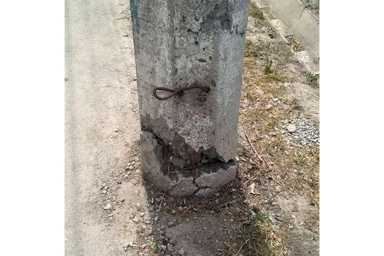 По его словам, в основании столба — большие трещины, однако его до сих пор не заменили и не отремонтировали.