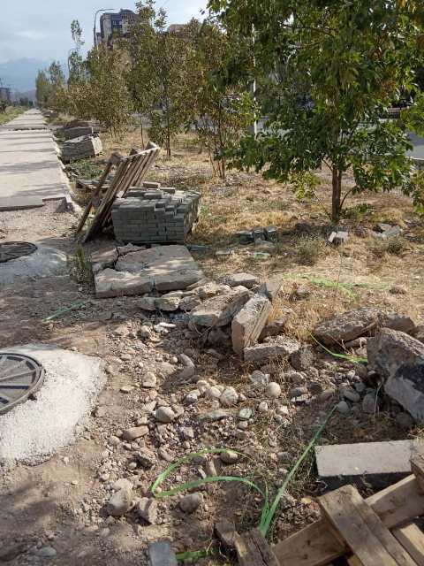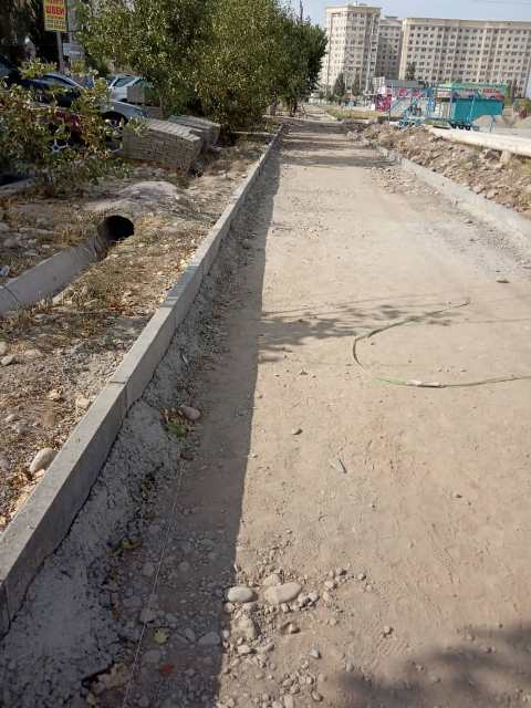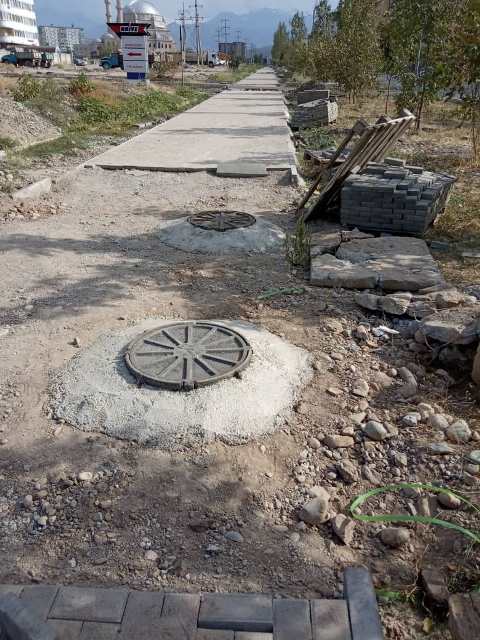 Тротуары в районе Кыргызского национального военного лицея в микрорайоне «Джал» делают уже несколько лет. Об этом 24-kg.com сообщил читатель.