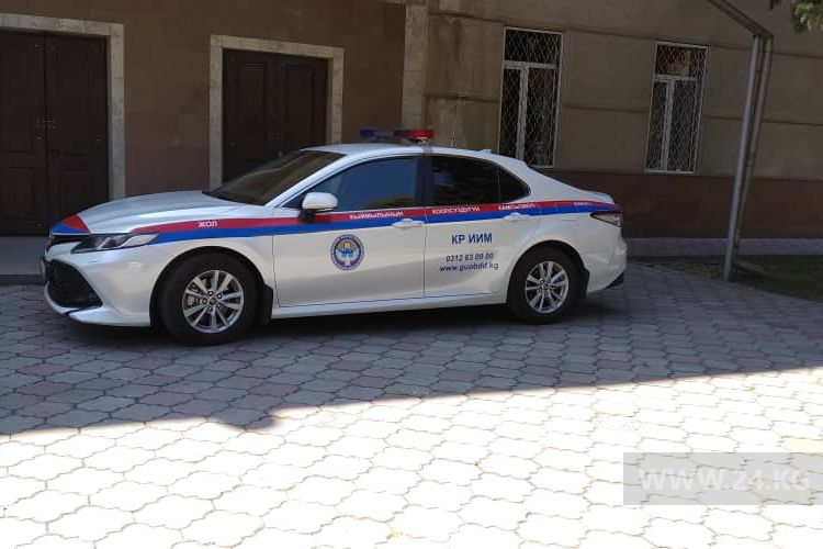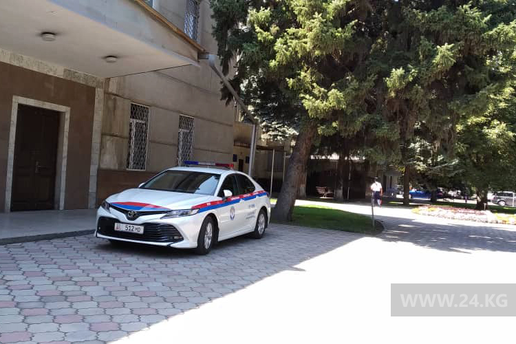 Возле входа в Дом правительства на улице Фрунзе на пешеходной зоне стояла машина ГУБДД.