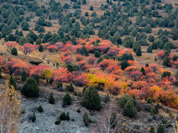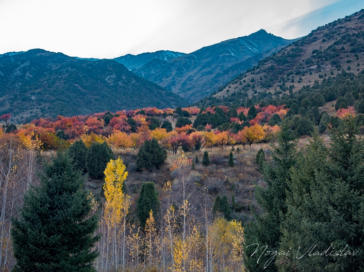 Сначала полюбуемся осенними красками Ала-Арчинского ущелья. Их великолепие просто поражает! Красоту увидел и сфотографировал Владислав Ногай.