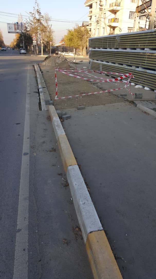 В Бишкеке на пересечении улиц Рысмендиева и Лесхозной самовольно демонтировали тротуар. Об этом 24-kg.com сообщают местные жители.