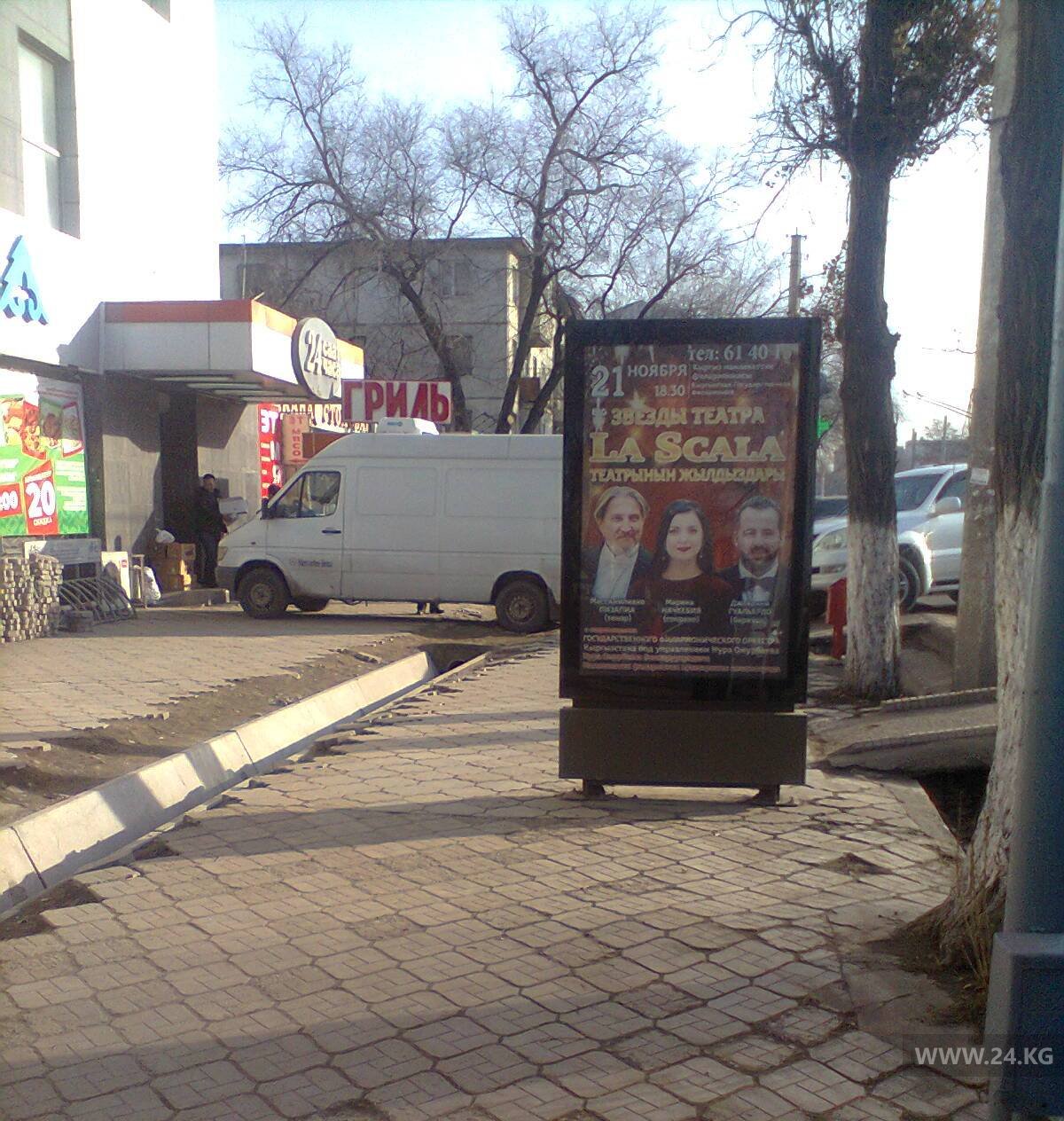 В Бишкеке на тротуаре напротив парка имени Ататюрка установлен рекламный щит, который мешает пешеходам. Об этом 24-kg.com сообщил читатель.