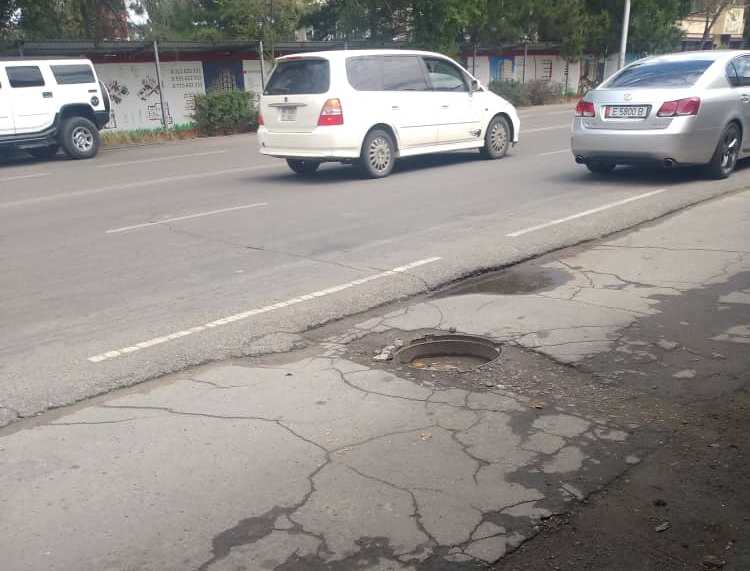 В Бишкеке на перекрестке улиц Жумабека и Усенбаева находится опасный люк. Об этом 24-kg.com сообщил читатель.