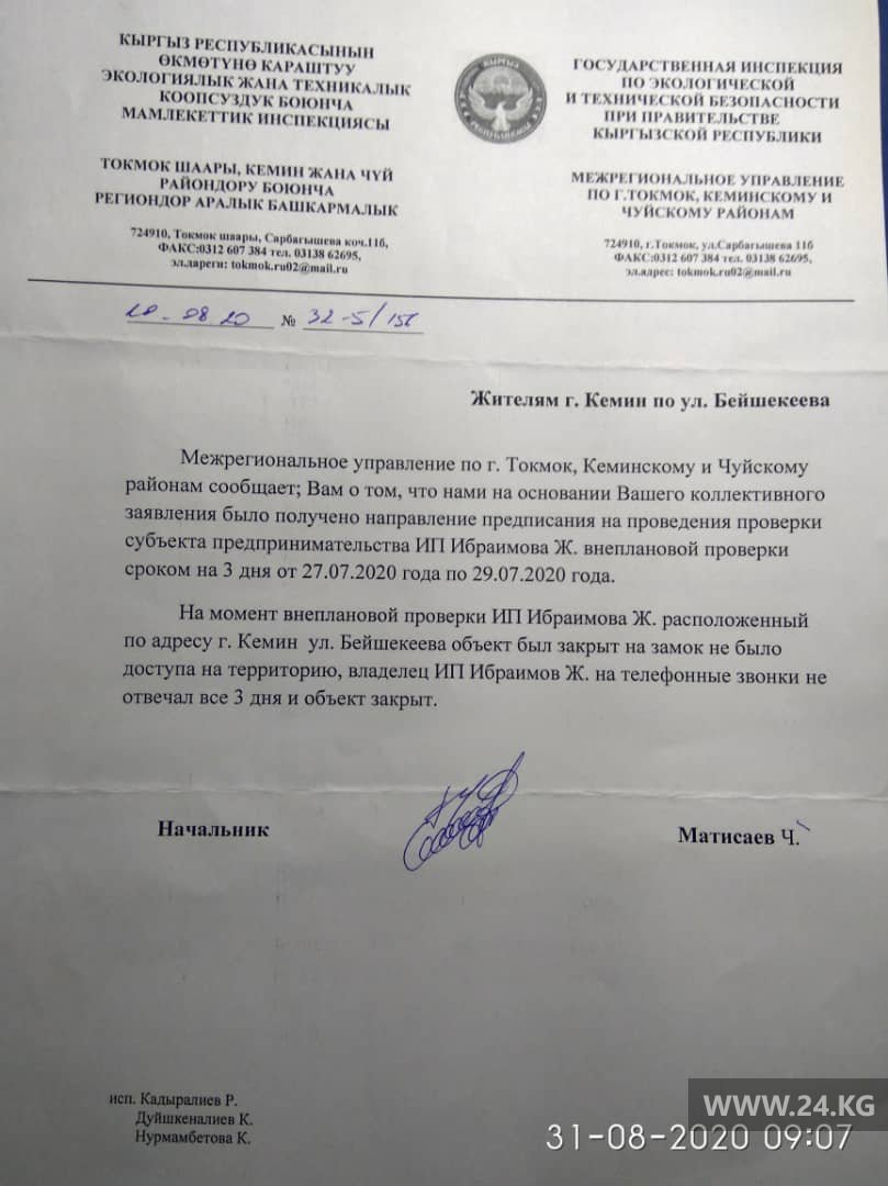В Кемине (Чуйская область) предприниматель построил завод в жилом районе. Местные жители жалуются на шум и пыль от предприятия. Об этом 24.kg сообщили они сами.
