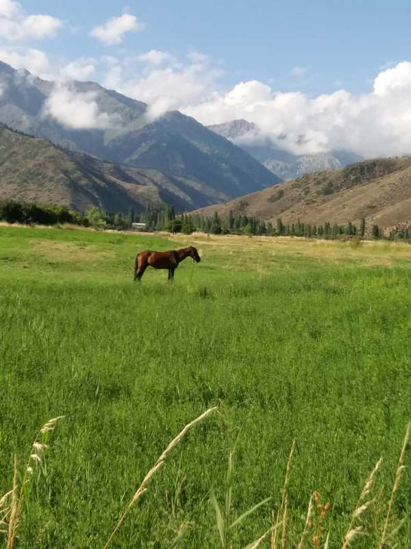 «Несравненная красота Иссык-Куля, небо и вода слились воедино. В любую погоду он красив и манит людей. Горы величественные и на их фоне в долине пасутся лошади», — описала свое августовское путешествие жительница Оша Анара Джоробаева.