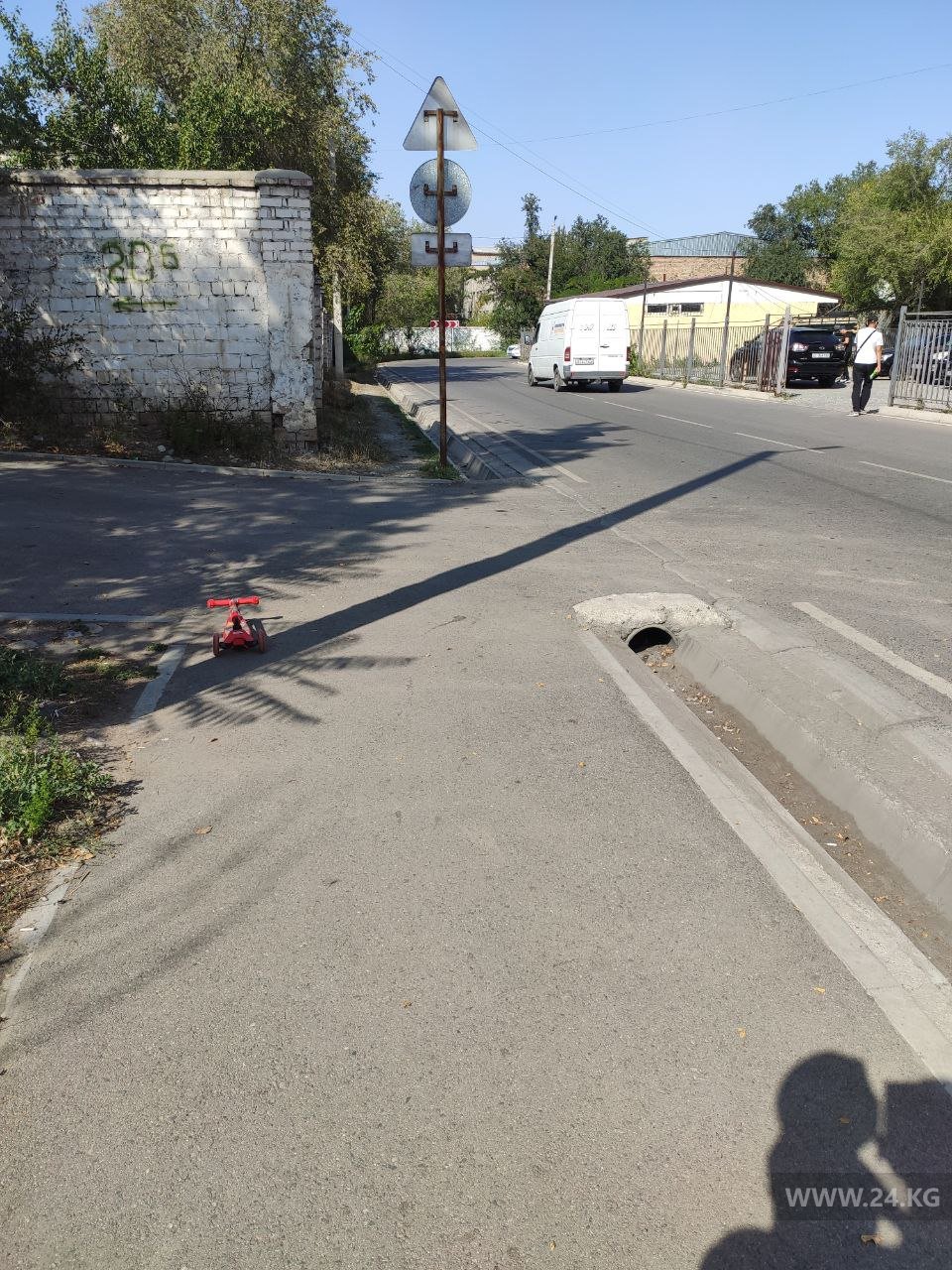 На улице Тыныстанова ниже улицы Ахунбаева нет тротуара. Об этом 24-kg.com сообщил читатель.