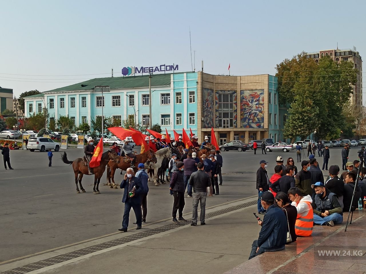 Отметим, накануне поздно вечером на площади в Оше стали устанавливать юрты. Сегодня там проходит митинг в поддержку президента КР.
