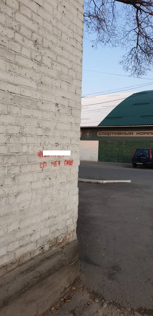 Объявление с адресом Telegram-канала нанесли краской в нескольких местах.
