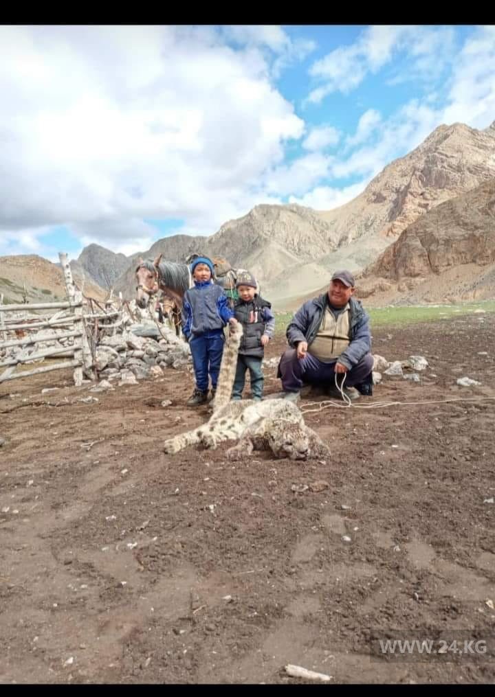 В Facebook некто Жолдошбек Мурсакматов выложил фотографии с убитым Снежным барсом в руках. Пользователи соцсети призвали провести расследование и наказать виновных в гибели краснокнижного животного.