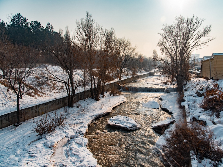 Начнем с Бишкека. Несколько фотографий заснеженной столицы еще в декабре сделал Виктор Клейменов.