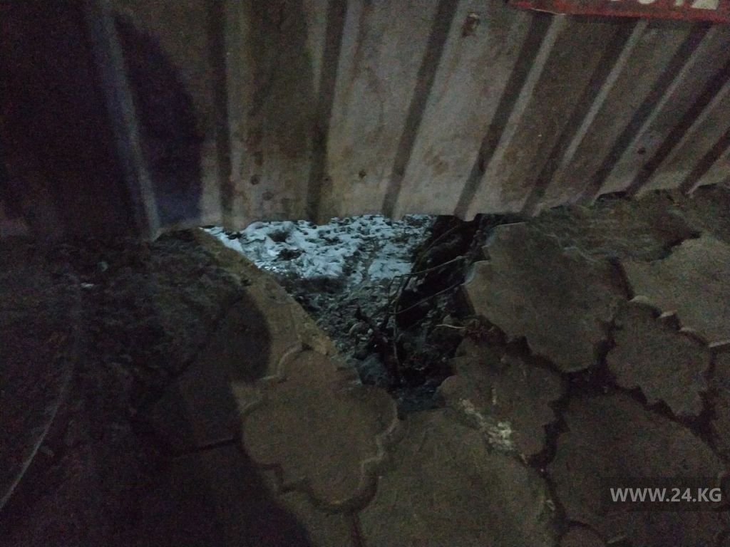 Возле стройки на проспекте Чуй в Бишкеке проваливается тротуар
