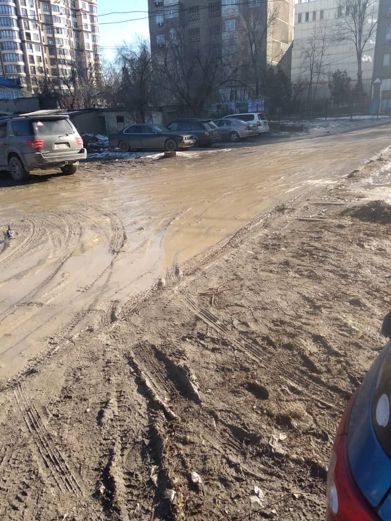 На бездорожье и грязь жалуются бишкекчане как в центре города, так и в жилмассиве. Фотографии они прислали 24-kg.com.