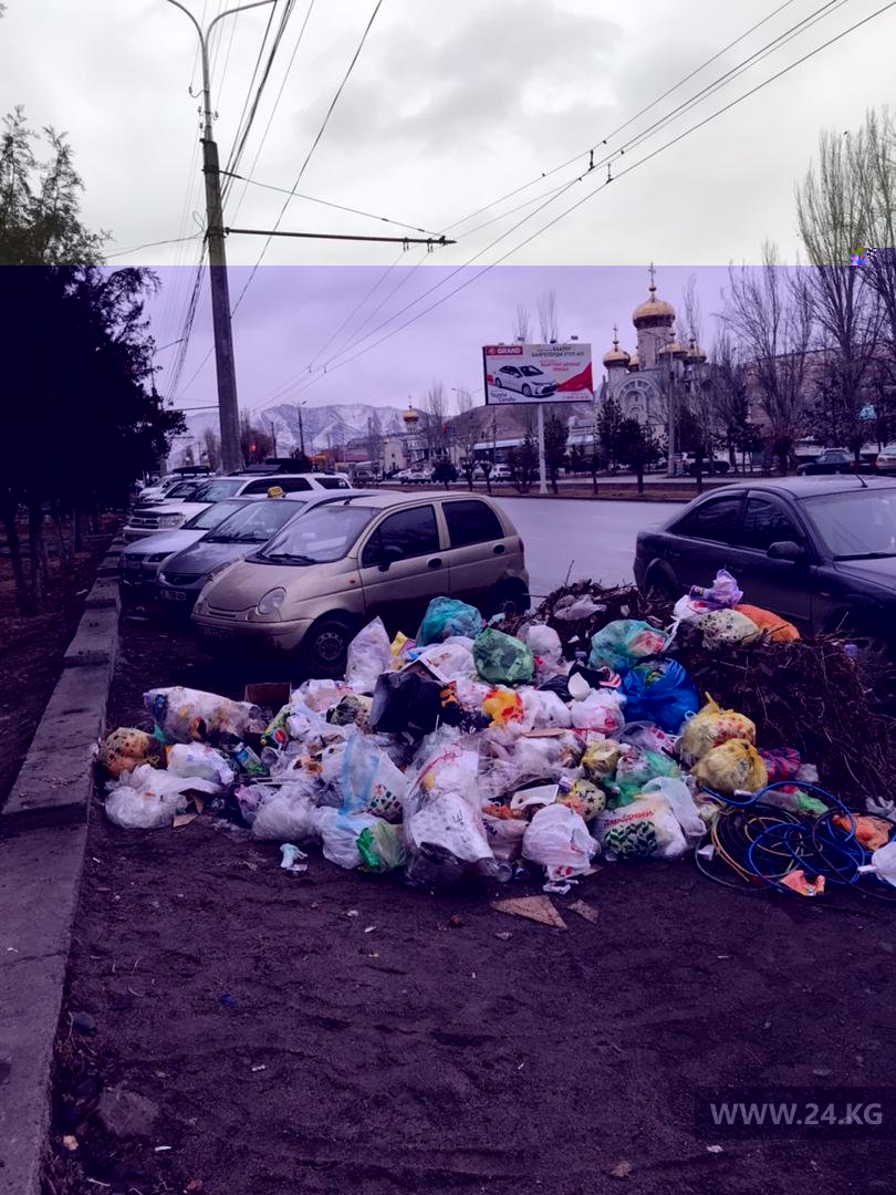 Мусорная куча образовалась в Бишкеке на улице Токомбаева в микрорайоне «Асанбай». Об этом 24-kg.com сообщил читатель.