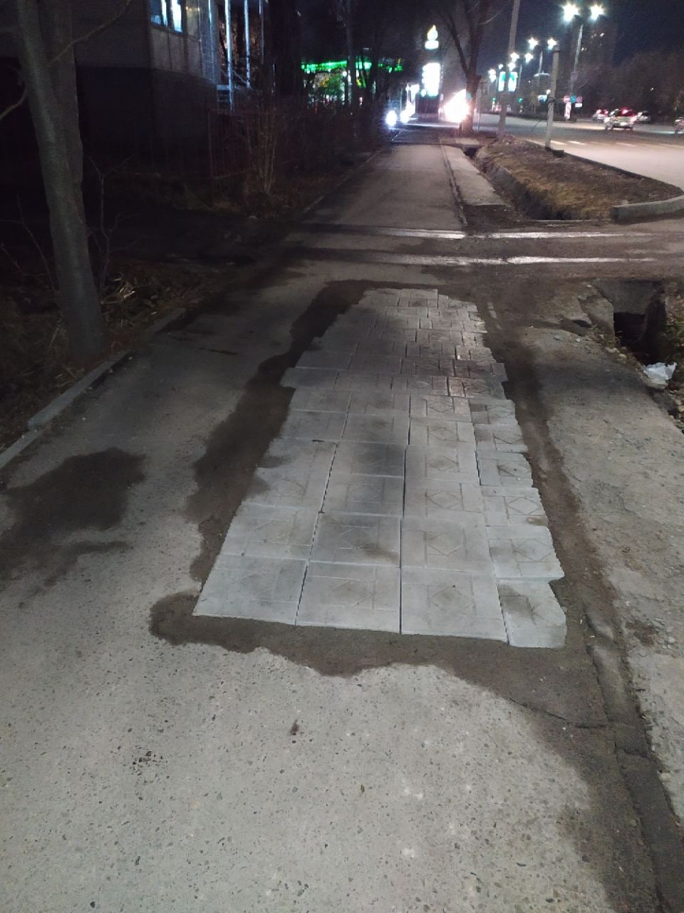 В 3-м микрорайоне Бишкека на одной из улиц муниципальные службы весьма своеобразно отремонтировали тротуар. Дыру в асфальте заделали брусчаткой. Фотографию последствий «ремонта» опубликовали в Сети местные жители.