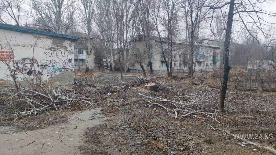 В 1-м микрорайоне возле домов № 13 и 14 в Канте рубят деревья. Об этом 24-kg.com сообщил читатель.
