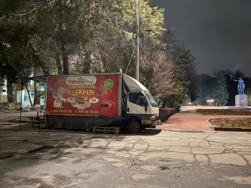 Уже более двух месяцев у железнодорожного вокзала в Бишкеке работает фастфуд на колесах. Скорее всего, он действует без каких-либо разрешительных документов. Об этом 24-kg.com сообщил читатель.