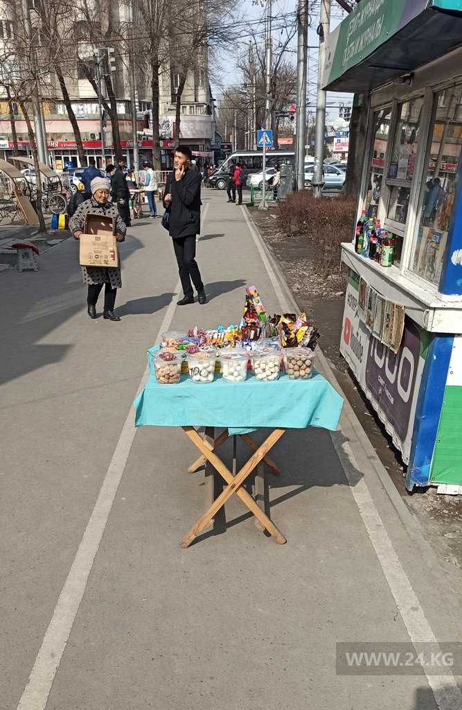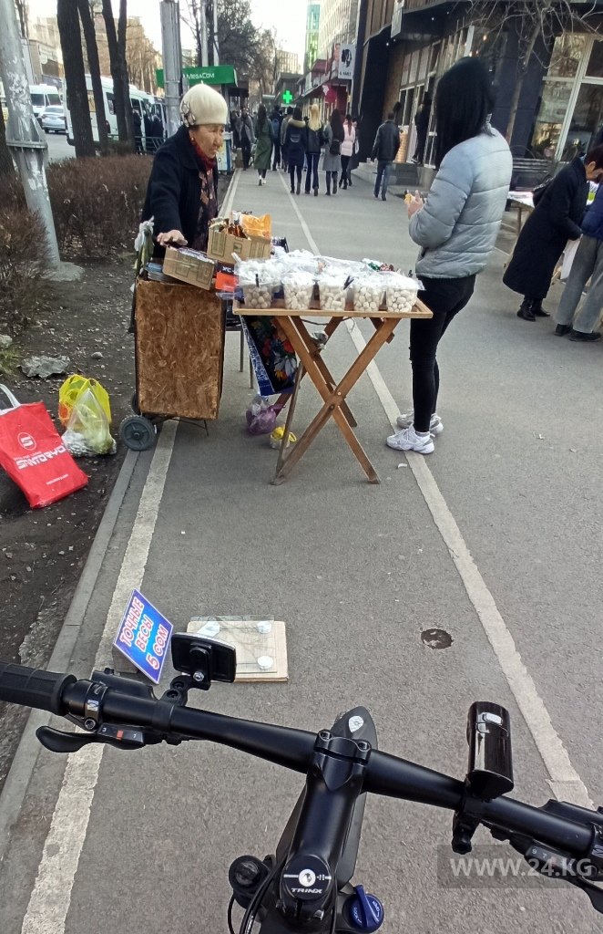 На велодорожках на улице Абдрахманова в Бишкеке идет торговля. Об этом 24-kg.com сообщил читатель.