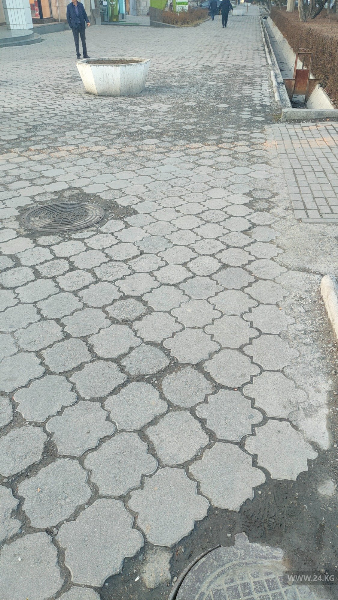 «На пересечении проспекта Чуй и улицы Ибраимова страшный тротуар. Почти вся брусчатка покрошилась. Хотя это центр города и рядом находятся крупные торговые центры», — написал он.