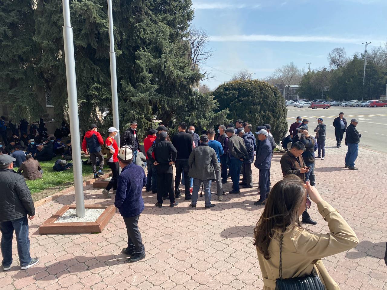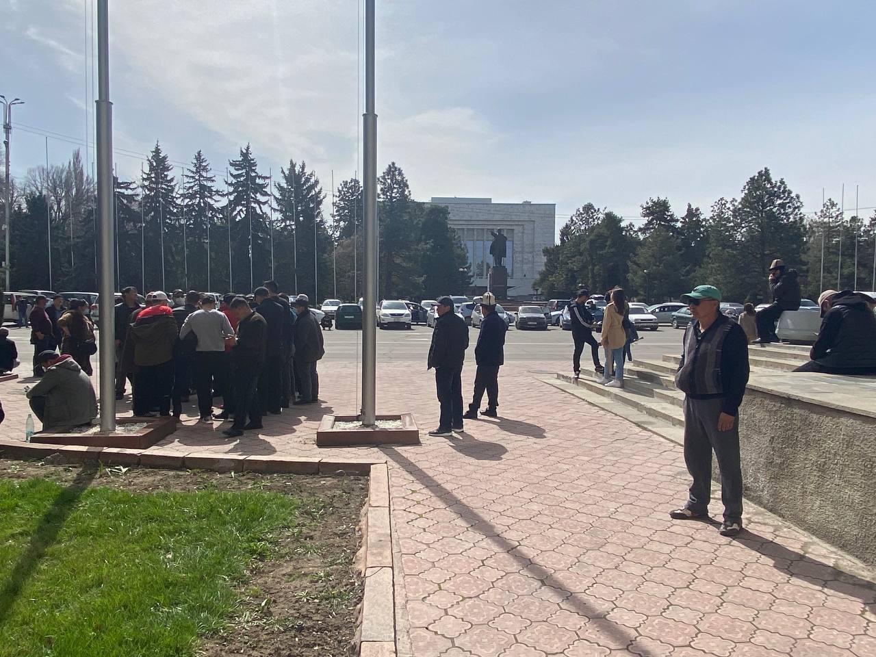 Митингующие ждут, когда к ним выйдут чиновники из Дома правительства. Некоторые из них расположились прямо на газоне. Об этом 24-kg.com сообщил читатель.