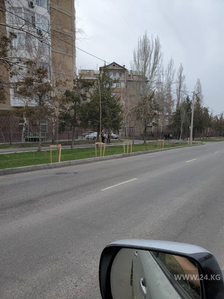Не опасно ли? На улице Каралаева в Бишкеке посадили деревья под проводами