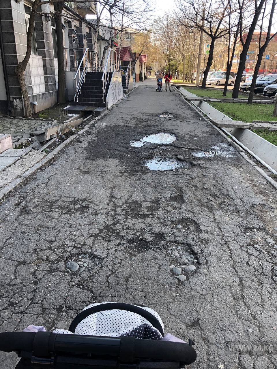 Невозможно пройти. На разбитые дороги и тротуар вновь жалуются бишкекчане