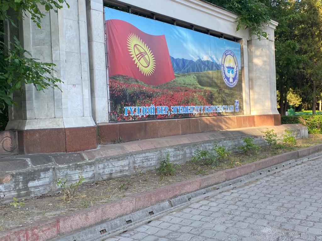В ста метрах от Дома правительства, на входе в сквер Чингиза Айтматова, расположены клумбы, над которыми висят растяжки «Процветай, независимый Кыргызстан!». Однако клумбы неухоженны, там нет не только цветов, но и травы. Об этом 24-kg.com сообщил читатель.