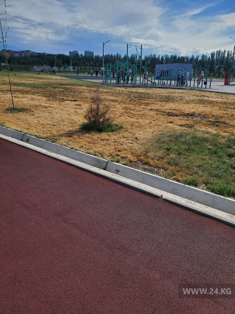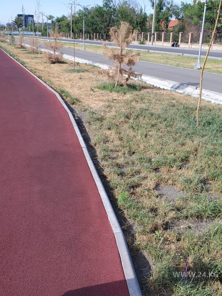 В парках «Ынтымак» и «Адинай» погибли молодые деревья, газоны высохли. «Куда смотрит мэрия? Постоянно показывают, что сажают деревья, а кто поливать будет? Все сохнет!» — написал автор фото.