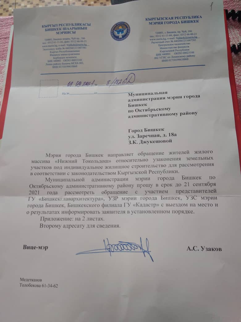 По ее словам, ранее они обратились с заявлением в муниципалитет, в котором просили помощи в решении проблемы с узаконением их домов и земельных участков. «В нем мы указали названия улиц, что они расположены в Свердловском районе. Получили ответ, в котором рассмотреть наше обращение поручается Октябрьскому акимиату. Получается, что ответственные специалисты муниципалитета не знают город? Это халатное отношение к обращению граждан», — написала она.