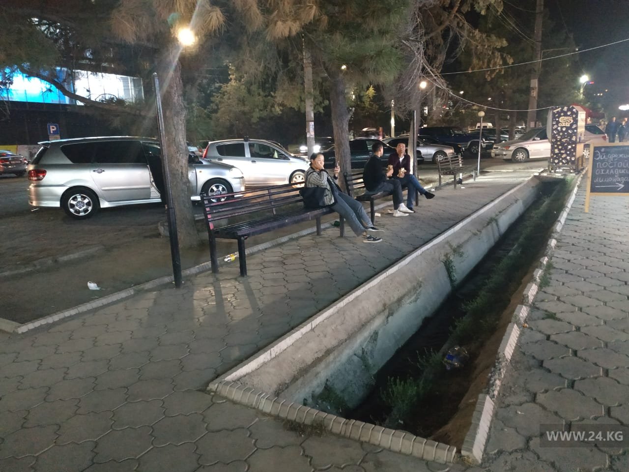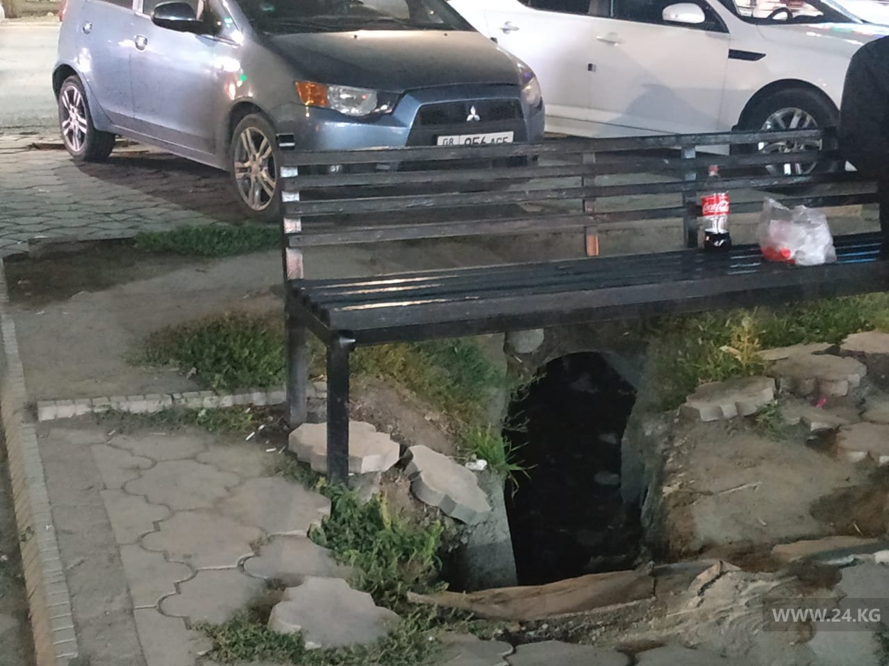 «Уложили брусчатку, установили скамейки. На них часто сидят люди, которые приобретают фастфуд в ближайших точках, покупатели с тяжелыми пакетами. Под одной из этих скамеек проходил арык. То ли он забился, но в этом году площадку разрушили, теперь там провал. Пользоваться скамейкой невозможно», — написал он.