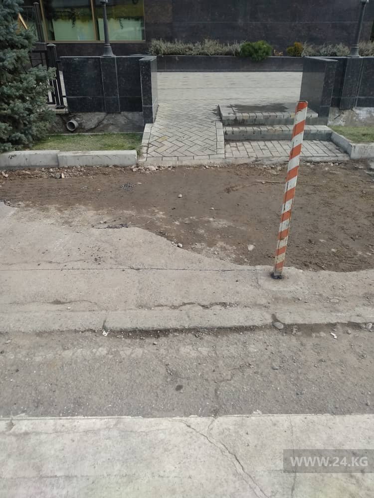 В районе пересечения улиц Токтогула и Гоголя не восстановили тротуар после ремонтных работ. Об этом 24-kg.com сообщил читатель.