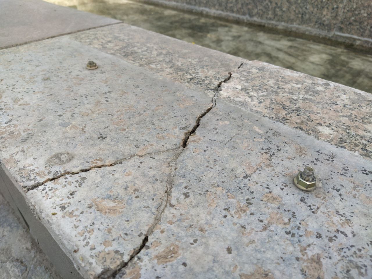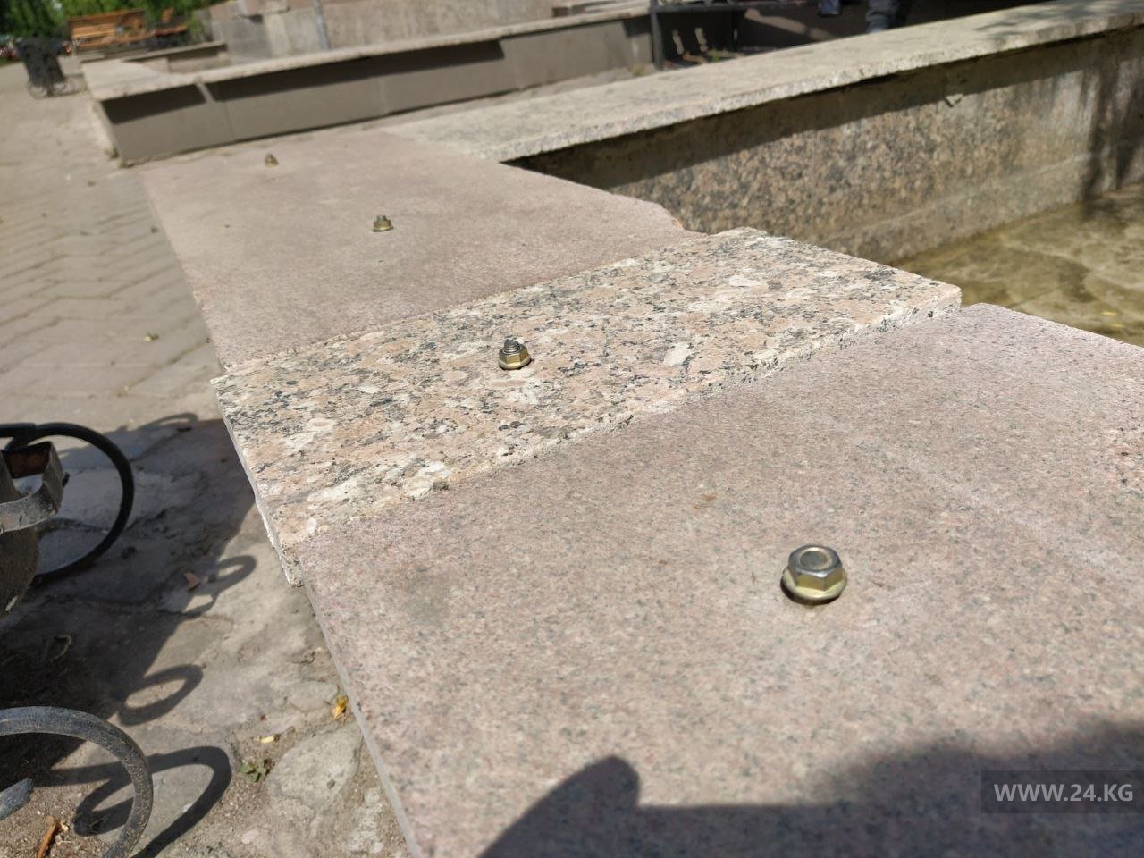 В Бишкеке при реставрации фонтанов Театральной аллеи рабочие посадили облицовочную плитку не на раствор, а на болты. Об этом 24-kg.com сообщил читатель.
