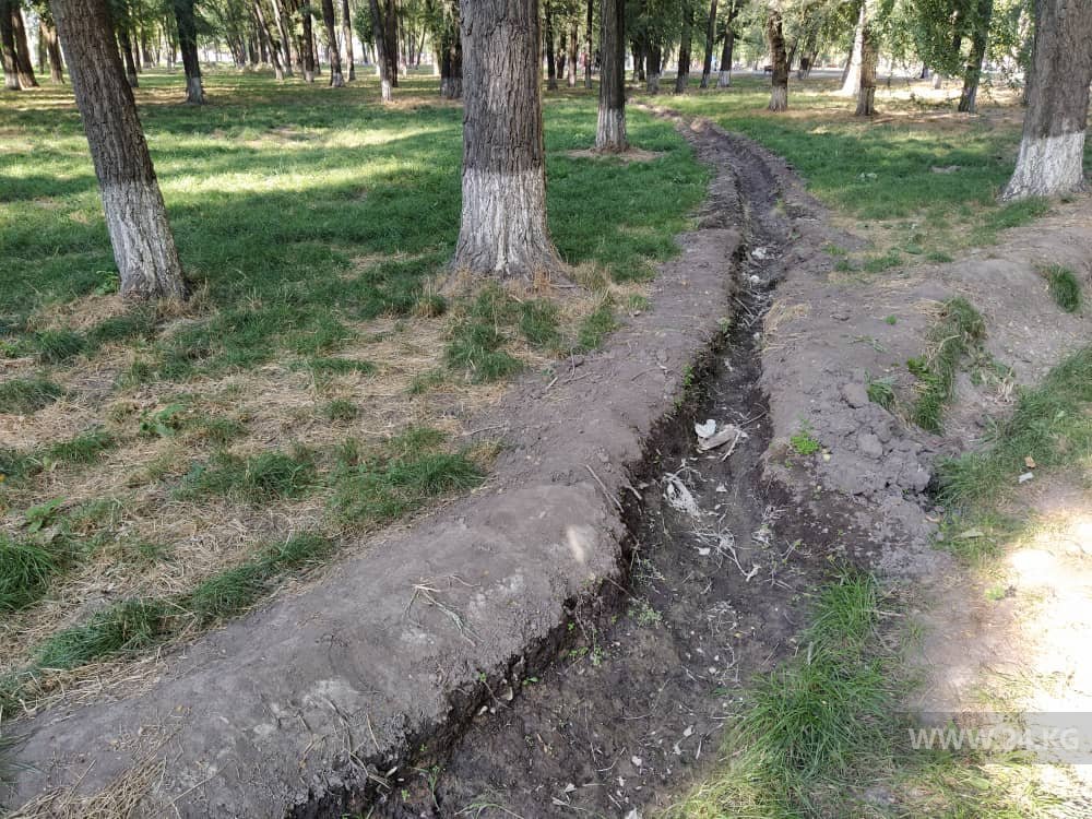 «Прошло два года со дня открытия парка. Урны для мусора до сих пор не установили. Вместо них на центральных аллеях стоят пластиковые баки, которые уже разбили. Нет системы полива. Рабочие сами копают арыки, словно это колхозное поле, а не парк. Саженцы засыхают. Почему изначально систему ирригации не предусмотрели в проекте его строительства? Памятник Чолпонбаю Тулебердиеву грязный. Сплошной беспорядок», — написал он.