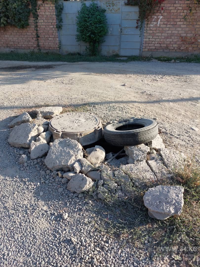 На пересечении улицы Тон и переулка Конорчок в жилмассиве «Кок-Жар» не могут закрыть канализационный и водопроводный колодцы. Об этом 24-kg.com сообщил читатель.