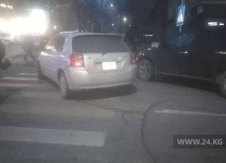 На пересечении улиц Токтогула и Акиева владелец этого автомобиля припарковался на разметке пешеходного перехода.