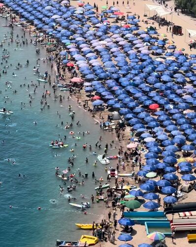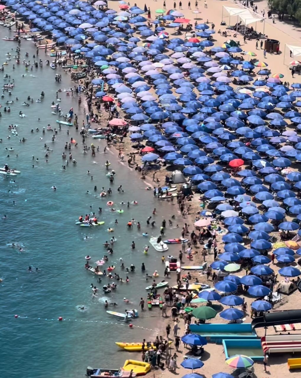 Снимок с высоты птичьего полета, опубликованный в соцсетях, стремительно набирает популярность. На кадре видно, как пляж в Бостери буквально ломится от туристов: берег устлан зонтами, полотенцами и телами, а озеро словно кипит от числа купающихся.