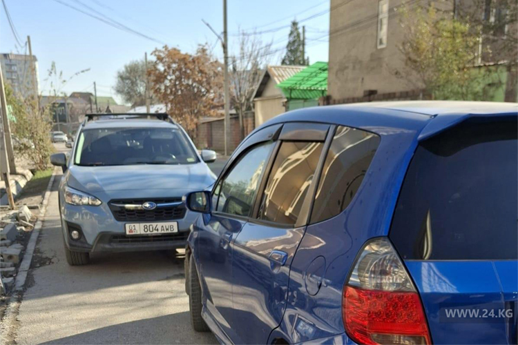 В Бишкеке водители устроили парковку на тротуаре. Об этом 24-kg.com сообщили горожане.