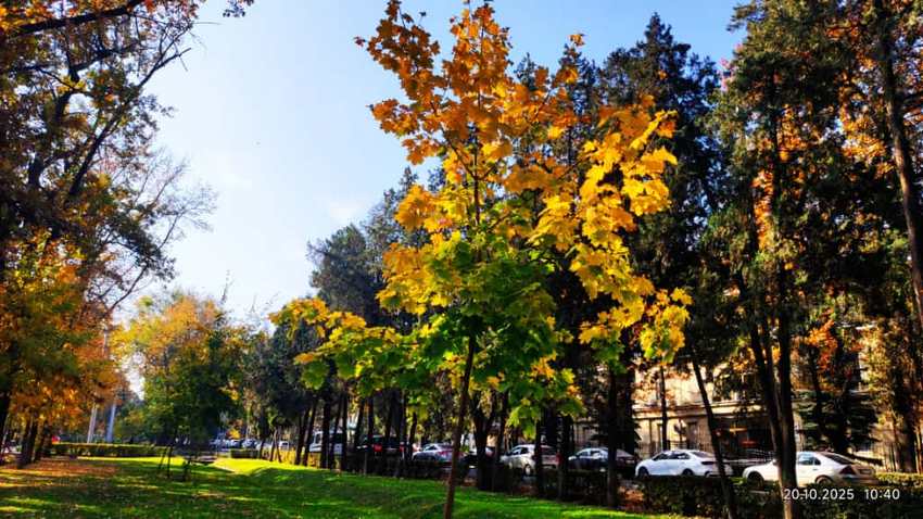 Сначала мы вернемся в золотую осень Бишкека. Сейчас явно не хватает красок нашему серому городу — а в октябре их было с избытком. Их и увидел Николай Манаковский.