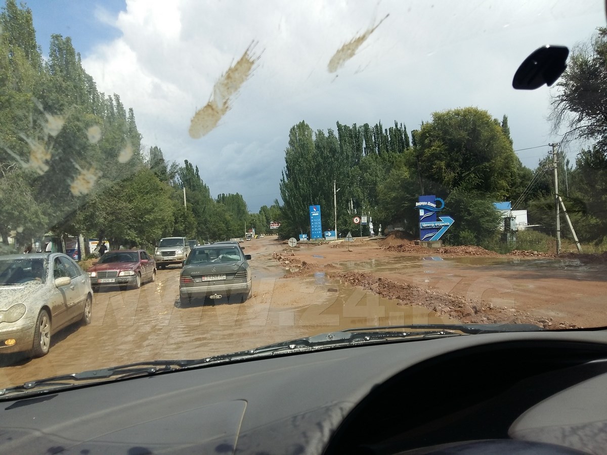 Трасса на Иссык-Куль превратилась в болото. Об этом ИА «24.kg» сообщили читатели.