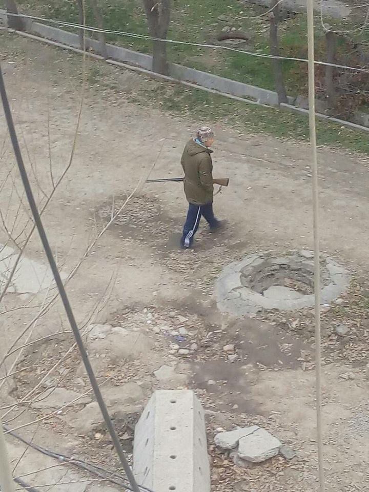 «Сегодня в 9.06 во втором микрорайоне Канта какие-то люди отстреливали собак из дробового ружья среди жилых домов. Как раз во время выстрела дочь вышла из подъезда и испугалась. Вокруг визг животных, крики женщин, стрельба, как в боевике, дядька носится с ружьем, как попало. Опознавательных жилетов нет. На замечание сказали, что у них разрешение от мэрии», — написал он.