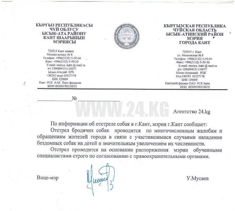 Мэрия Канта сообщила ИА «24.kg», что отстрел бродячих собак согласовали с правоохранительными органами.